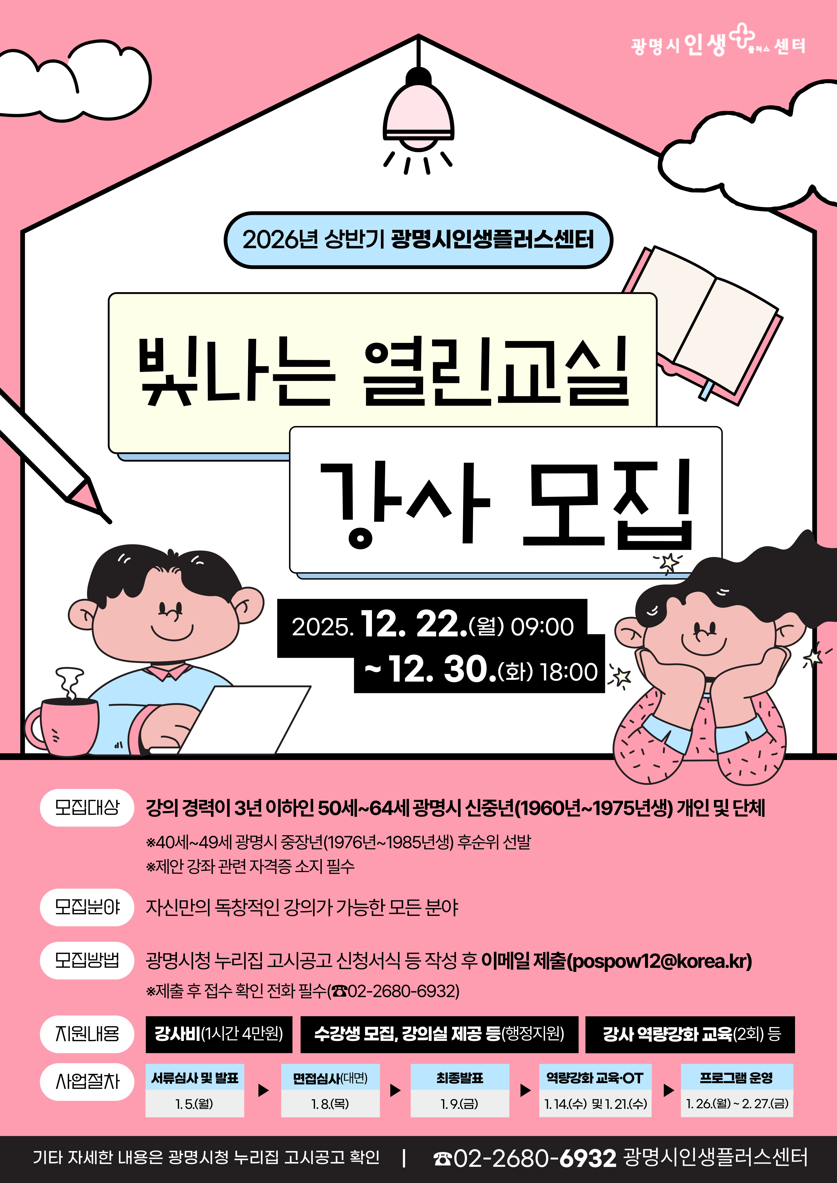 2026년 상반기 「빛나는 열린교실」 아마추어 강사 모집